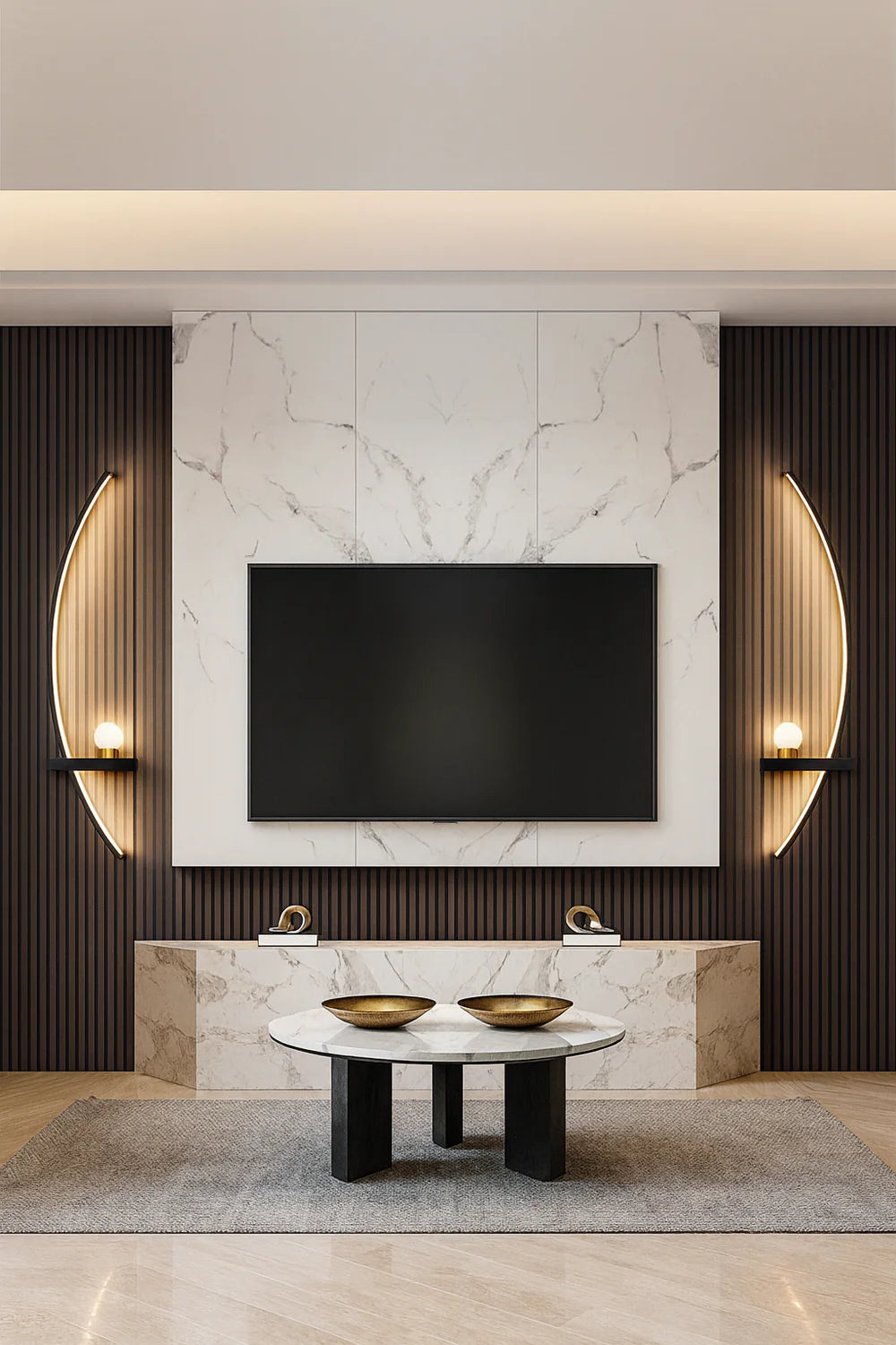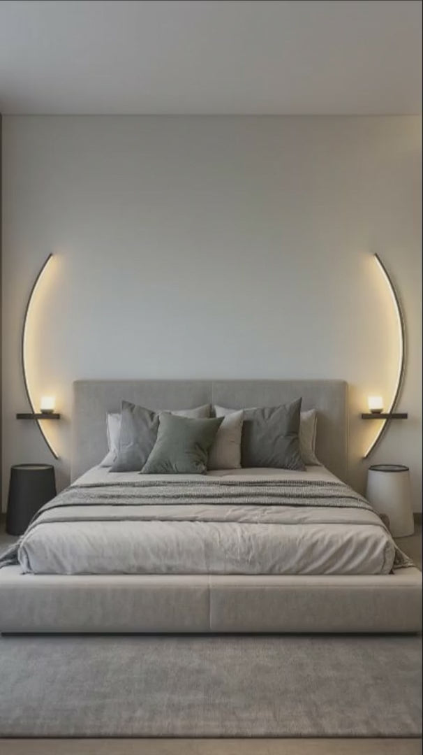 Sanftes, indirektes Licht, das die Wand umhüllt statt den ganzen Raum zu erhellen. Minimalistische Kurven, ein schwebender Effekt und die Atmosphäre einer Hotelsuite – sofort spürbar.